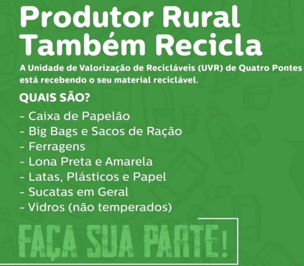 Coleta seletiva na área rural, de Quatro Pontes, inicia nesta quinta