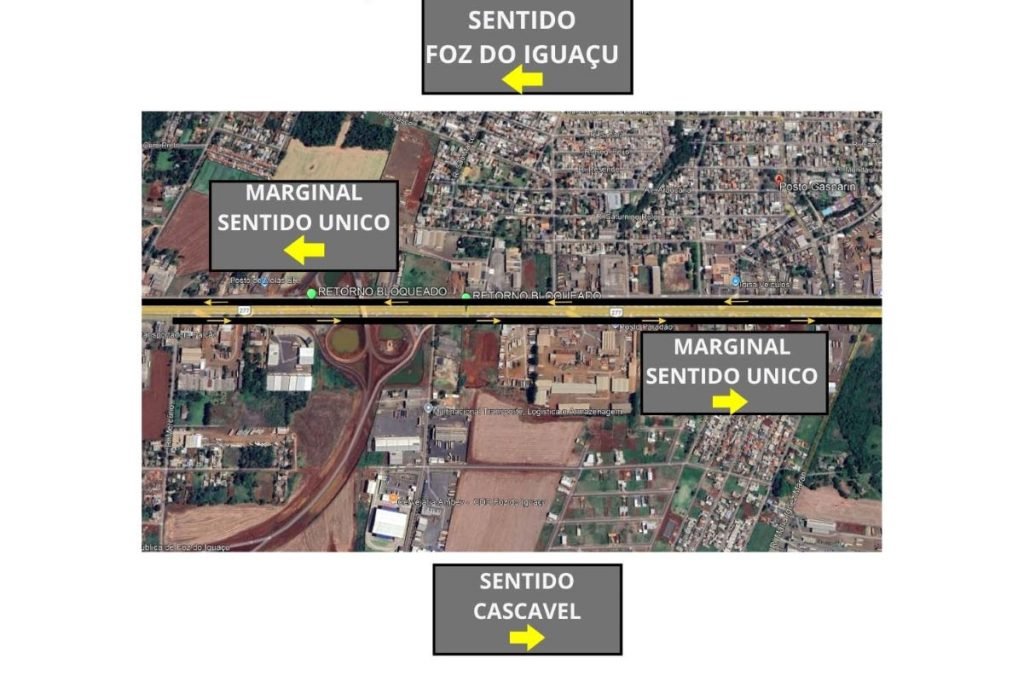 Vias marginais da BR-277 têm alteração de tráfego na região de Foz do Iguaçu