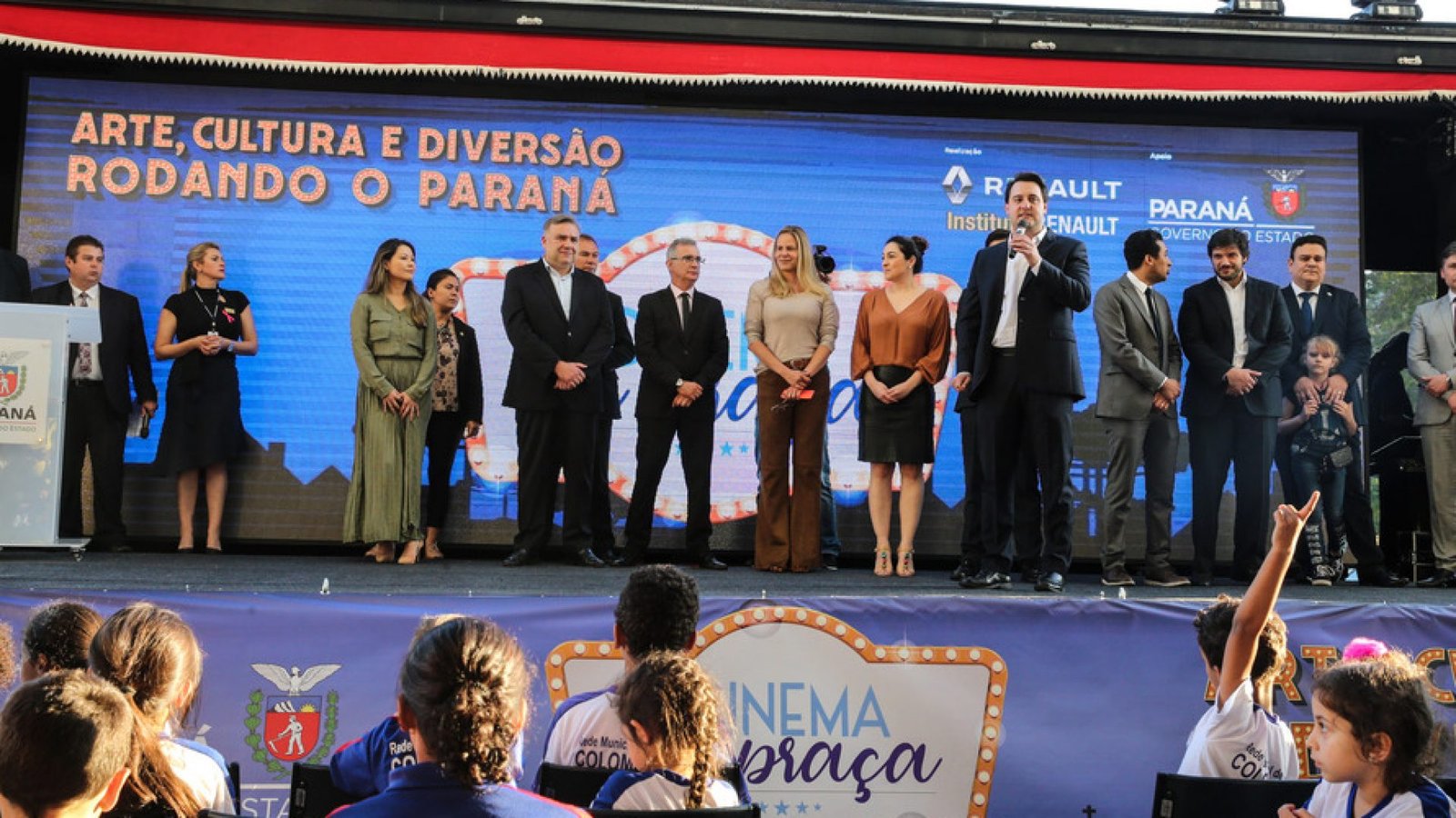 O Governo do Paraná e a Renault do Brasil lançaram nesta quarta-feira (9), no Palácio Iguaçu, o programa itinerante Cinema na Praça, que propõe levar diversão e cultura para cidades pequenas que não possuem cinemas de rua ou em centros comerciais. Também apoiam o projeto o Instituto Renault e a Motion Picture Association – MPA.