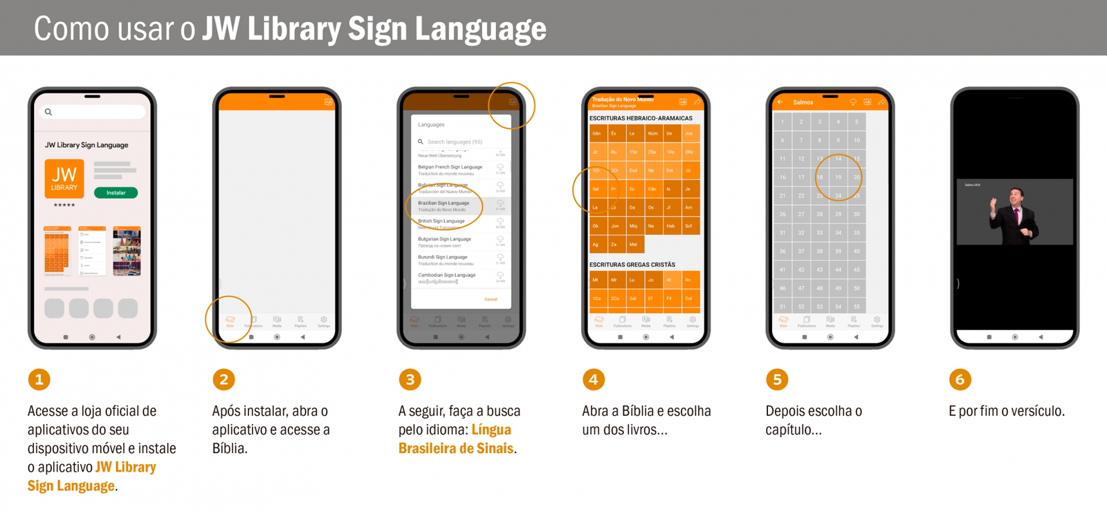 Acesse a Bíblia em Libras no aplicativo JW Library Sign Language.