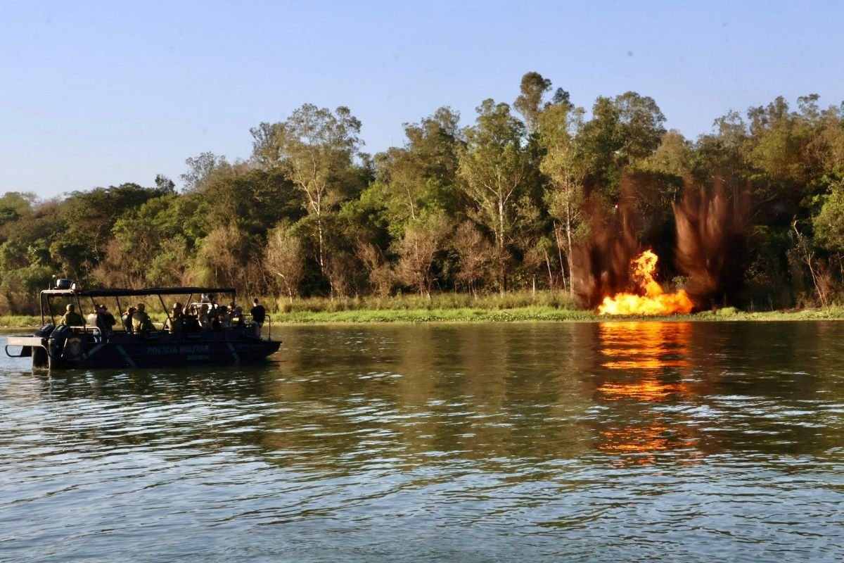 As polícias do Paraná desativaram nesta sexta-feira (25) um porto clandestino utilizado como ponto estratégico para o tráfico internacional de drogas em Guaíra, na fronteira com o Paraguai. A ação faz parte da Missão Paraná e contou com o apoio da Polícia Federal. A iniciativa é coordenada pela secretaria estadual da Segurança Pública (SESP) e promove operações conjuntas das forças de segurança. Foram usadas cargas explosivas controladas, garantindo a segurança do entorno durante a detonação.