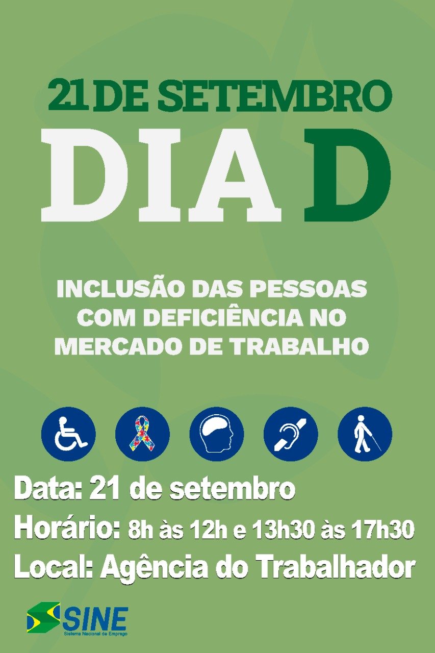 A Agência do Trabalhador de Assis Chateaubriand realizará na próxima quarta-feira (21), o ‘Dia D’ para inclusão de trabalhadores com deficiência e reabilitados do INSS.
