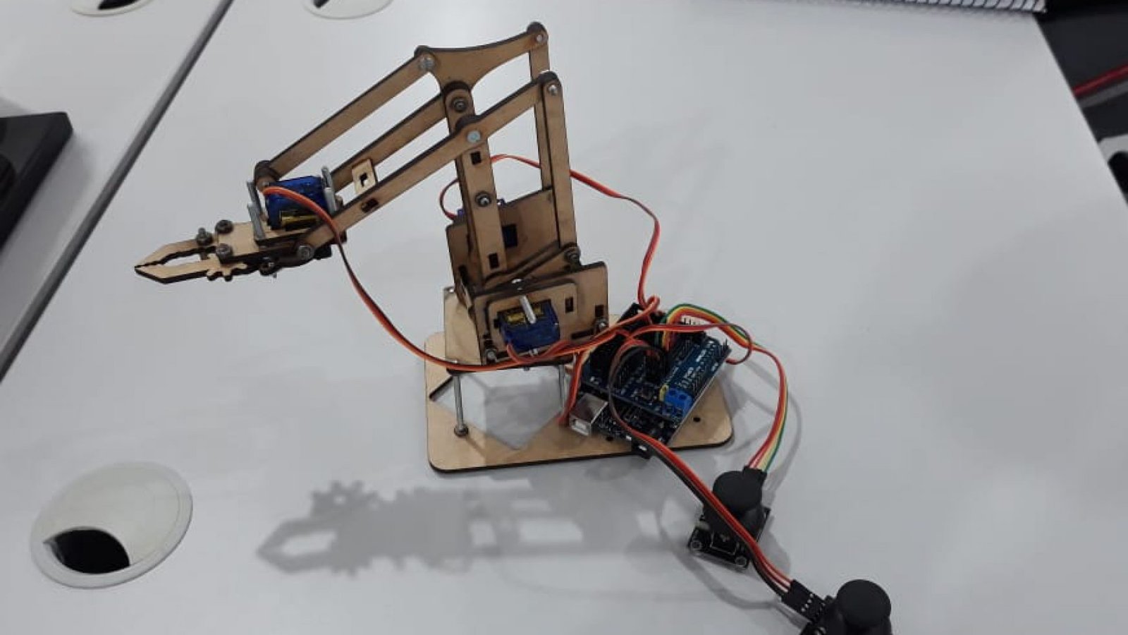 Com o uso do Arduíno – uma placa utilizada para automação de circuitos eletrônicos – como semáforos e ambientes interativos – seus alunos do 2º ano do Ensino Médio do curso integrado em Informática estão desenvolvendo braços robóticos capazes de executar tarefas simples com alta precisão.