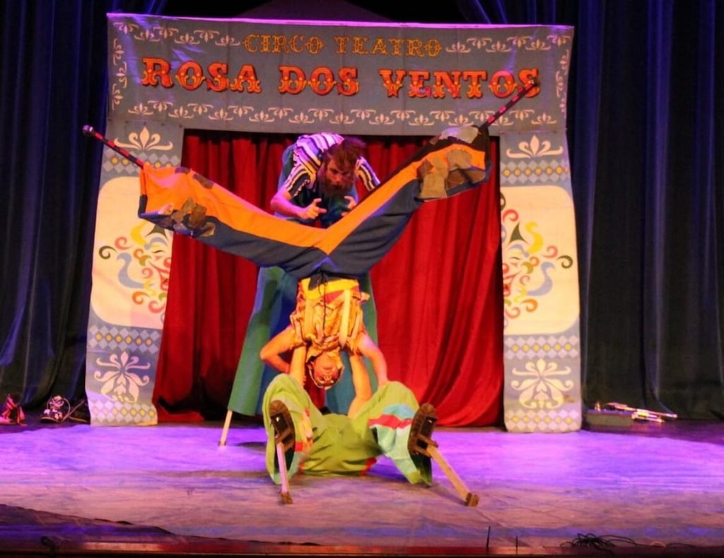 O grupo Rosa dos Ventos, de São Paulo, inspirou-se nos artistas populares de rua para produzir o espetáculo “Saltimbembe Mambenbancos”, encenado nessa quarta-feira (10) no Teatro Municipal de Toledo, integrando a XIX mostra de Circo Social e XII Festival Nacional de Circo. Crianças e adultos divertiram-se com vendedores de bugigangas em cena, pernas de pau, malabaristas e palhaços. Luiz Valente é um dos integrantes do elenco e destacou a força do circo como atividade cultural e de transformação social.