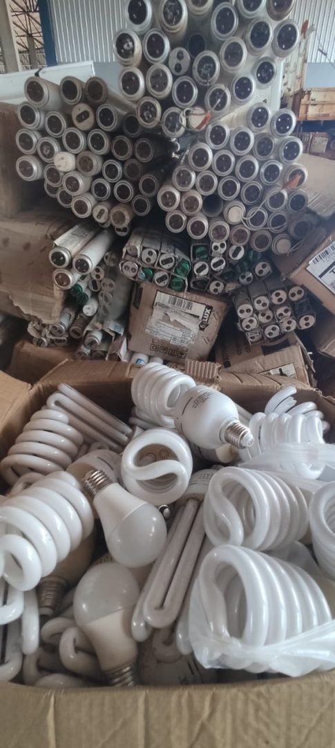 Nessa etapa foram recolhidas mais de 500 lâmpadas fluorescentes, de vapor de sódio e mercúrio e de luz mista e LED, onde serão encaminhadas por empresa especializada para serem submetidas a um processo de descontaminação e a reciclagem dos componentes (metal, plástico e vidro), podendo voltar para a cadeia produtiva.