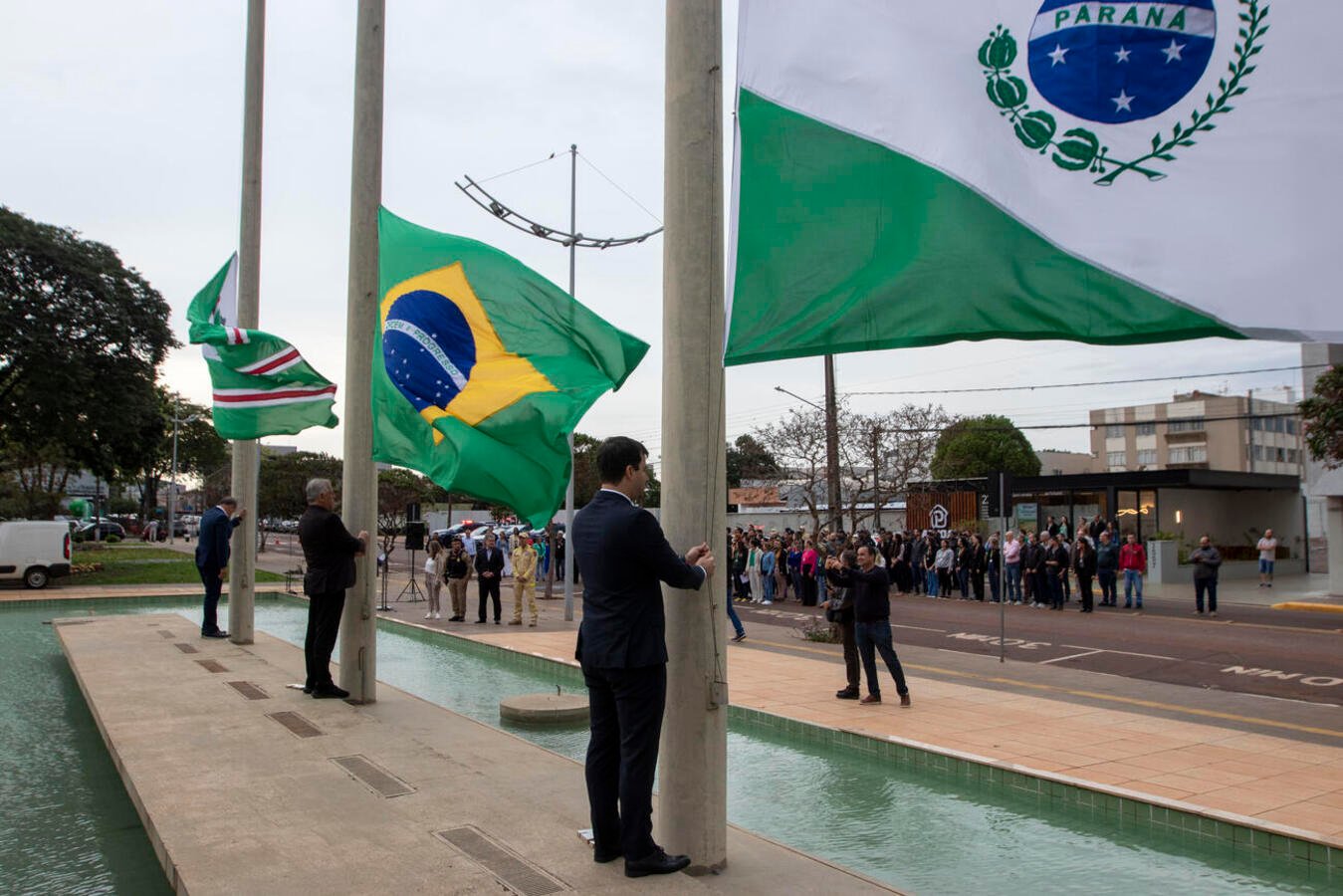 A solenidade teve início com a formação da frente de honra, seguida pela execução do Hino Nacional Brasileiro e pelo hasteamento das bandeiras. O pavilhão nacional foi conduzido ao alto pelo deputado federal Dilceu Sperafico; a bandeira do Paraná, pelo promotor de Justiça José Carlos Mendes Filho; e a de Toledo, pelo vice-prefeito Lucio De Marchi, que representou o prefeito Mario Costenaro, que se encontra em compromisso oficial em Curitiba.