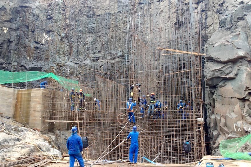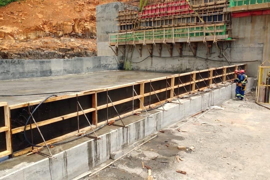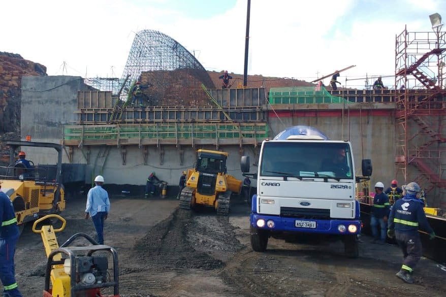 Em paralelo, seguem os trabalhos de escavação, preparo de fundações e concretagem de outras estruturas da usina. Uma das frentes de serviço que está bastante adiantada é a de construção da estrutura de desvio do rio pela margem esquerda. O desvio completo está previsto para o mês de abril e é necessário para que as equipes possam concluir a construção do barramento.
