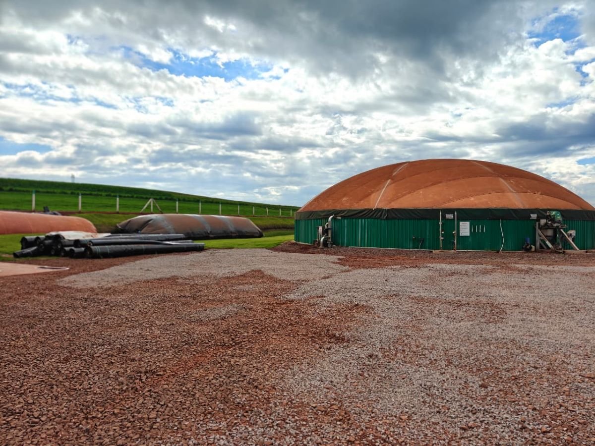 PROCESSO – O processo de transformação de dejetos suínos em biogás e biometano envolve a biodigestão anaeróbia em um biodigestor. Os dejetos, ou outros resíduos orgânicos líquidos, são inseridos no biodigestor, um recipiente fechado sem oxigênio. Ali, bactérias específicas (arqueias) consomem a matéria orgânica, liberando biogás, que contém 50-70% de metano. A planta, construída em 2018/2019, possui tecnologia moderna, como sistema de agitação potente e aquecimento do biodigestor com o calor gerado pelo grupo gerador (que produz energia elétrica). A temperatura ideal de operação é de 38-40 graus.