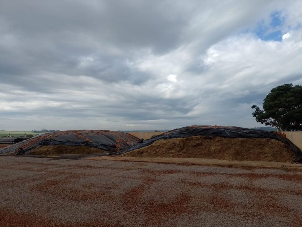 “O recebimento de dejetos suínos é diário, proveniente de duas propriedades da região, que são transportados por caminhões para processamento. Ao final do processo, obtém-se biofertilizante, que é aplicado na propriedade, em áreas de cultivo de grama Tifton, utilizadas para fenação, e nas plantações de soja e milho. Além da produção de biogás e biometano, o biofertilizante é um produto relevante. A cultura energética, armazenada sob lonas pretas para conservação, é composta por capiaçu e sorgo, cultivados em áreas adjacentes. Quando as plantas atingem o ponto ideal de desenvolvimento, são cortadas de uma só vez com uma ensiladeira. O material é compactado e armazenado. Diariamente, o biodigestor recebe cerca de uma tonelada e meia desse material, além dos dejetos suínos e, em breve, resíduos”, afirma.