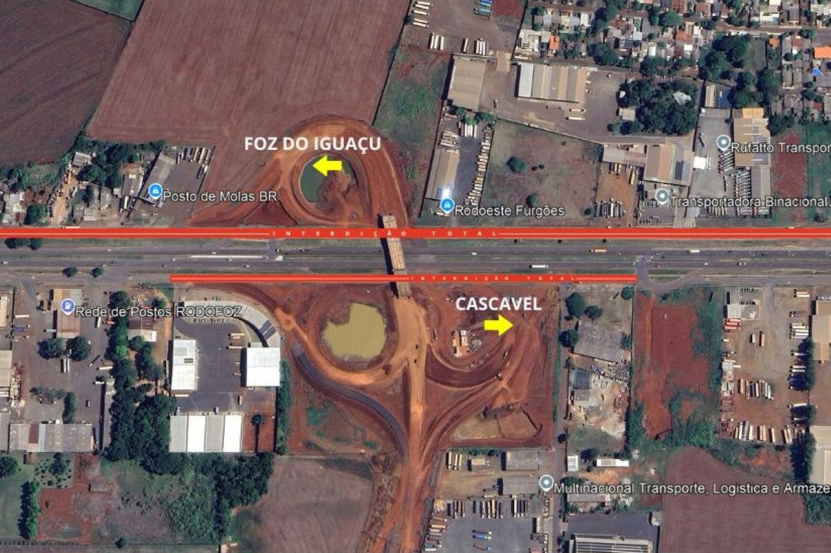 BR-277 em Foz do Iguaçu terá vias marginais interditadas a partir desta quinta-feira (11)