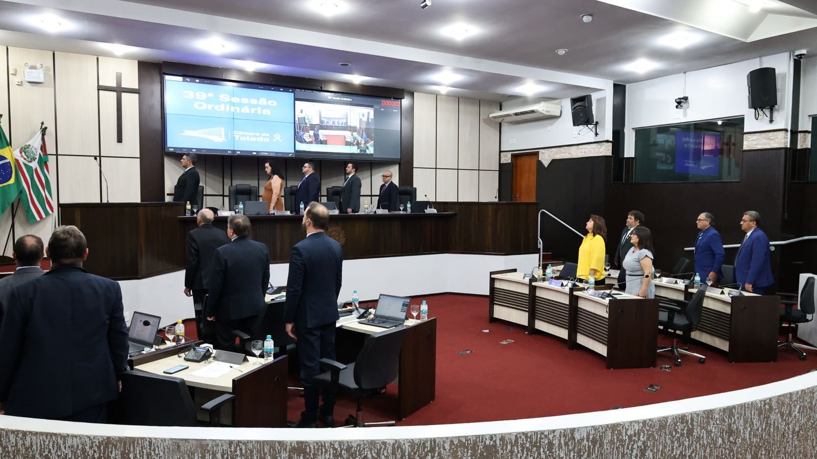 Antes da sessão, a vereadora Katchi Nascimento elogiou dois profissionais com Moções de Aplausos. O primeiro homenageado foi Ademir Evaristo de Freitas, em reconhecimento ao seu trabalho enquanto coordenador do Centro de Eventos e contribuição com o serviço de Equoterapia. Em seguida, a parlamentar prestou homenagens ao médico pediatra Raul de Paula Xavier Sobrinho, pelos serviços prestados na área da pediatria em Toledo.