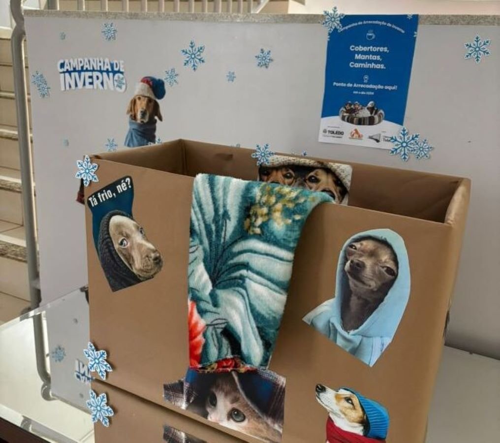 A Secretaria de Meio Ambiente de Toledo, por meio do Departamento de Proteção Animal, lançou uma campanha de inverno para arrecadação de cobertinhas, mantas e caminhas destinadas a cães e gatos do município. A ação conta com o apoio da Câmara Municipal de Toledo, por meio do seu Departamento de Comunicação, e tem como objetivo amenizar os impactos das baixas temperaturas sobre os animais, especialmente os mais vulneráveis.