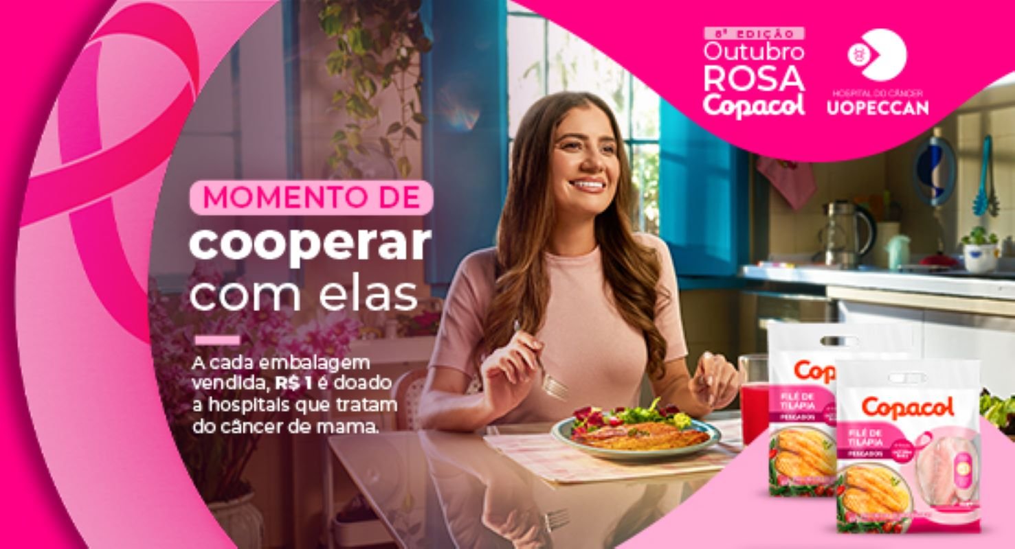 Outubro é o mês de conscientização sobre o câncer de mama, período em que reforçamos a importância da prevenção e do diagnóstico precoce. Com esse propósito, a Copacol lança a 8ª edição da Campanha Outubro Rosa, mobilizando consumidores e parceiros para apoiar mulheres que enfrentam a doença.