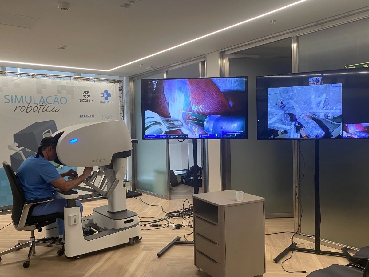 A cirurgia desta segunda-feira será realizada de forma inédita: o paciente, um suíno utilizado para fins de treinamento, está no Centro de Treinamento de Cirurgia Robótica Scola, em Campo Largo, na Região Metropolitana de Curitiba, enquanto o comando do procedimento será feito a partir de Cascavel, no Hospital CEONC, através de um console cirúrgico.