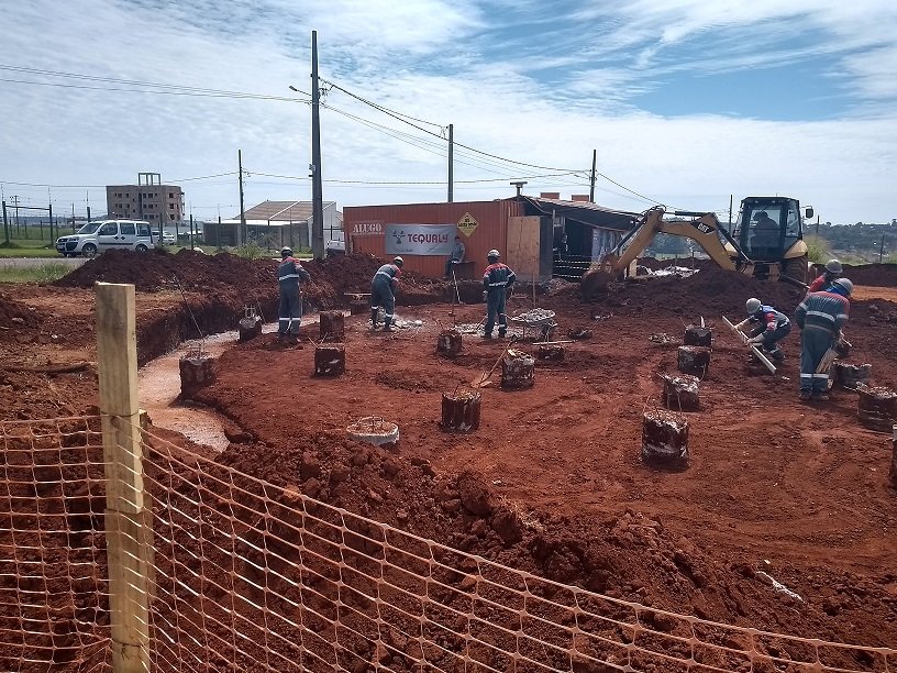 As equipes da empresa contratada trabalham na construção da base do reservatório na Avenida das Pombas, na esquina com a Rua Bem-te-vi. Após concretada a base, serão montadas as chapas de aço inox que vão constituir a unidade de armazenamento. A previsão é de que em 90 dias o reservatório já esteja operando.