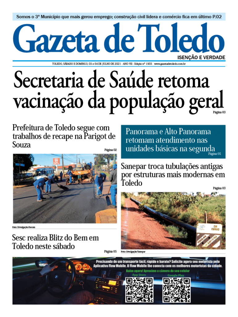 Edição em PDF, 17/07/2021 – Toledo tem alta adesão de vacinados com segunda dose contra a Covid-19