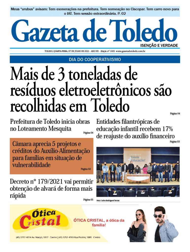 Edição em PDF, 07/07/2021 – Mais de 3 toneladas de resíduos eletroeletrônicos são recolhidas em Toledo