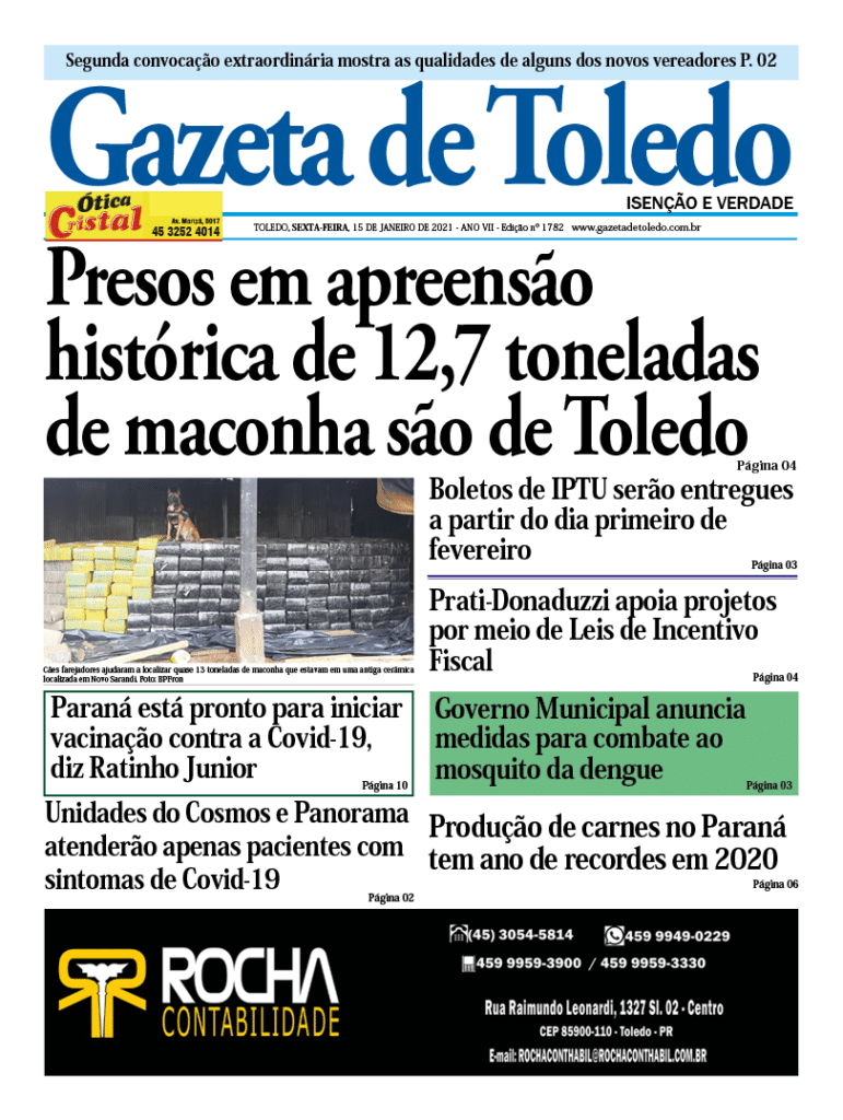 Edição em PDF, 19/01/2021 – Toledo recebe insumos para imunização