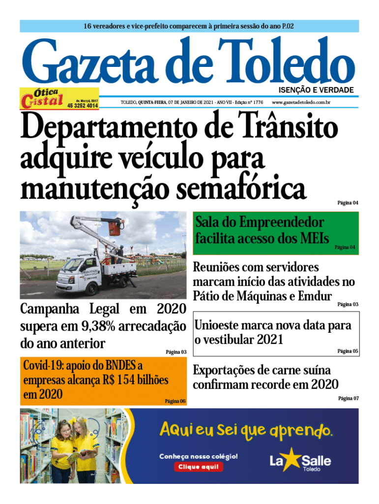 Edição em PDF 07/01/2021 – Departamento de Trânsito adquire veículo para manutenção semafórica