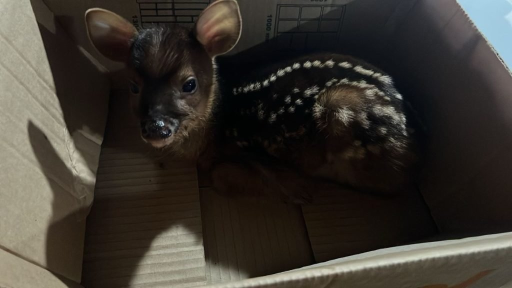 Polícia Militar resgata filhote de veado às margens de rodovia em Corbélia