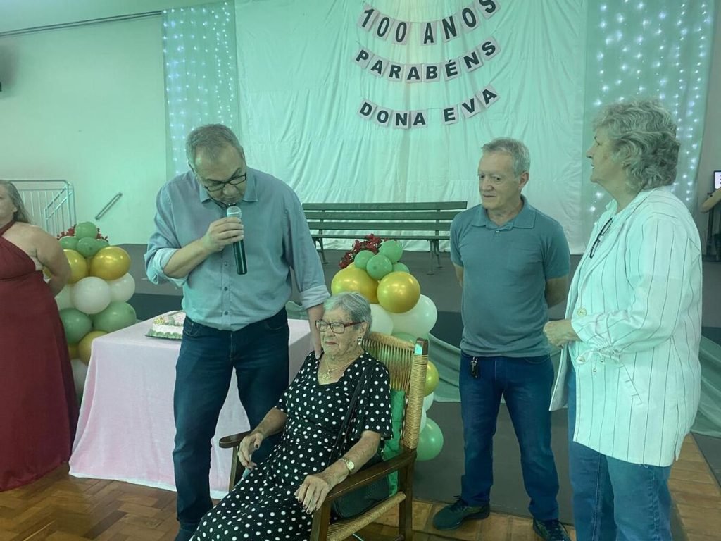 Algo raro – embora cada vez mais presente no cotidiano da sociedade brasileira – marcou a tarde desta sexta-feira (28). O Centro de Revitalização da Terceira Idade (Certi) Doutor Ernesto Dall’Oglio, no Jardim Coopagro, recebeu a celebração pelos 100 anos de vida de Eva Gomes de Souza Benatti, data simbólica que reuniu amigas, familiares, colaboradores e visitantes ilustres.