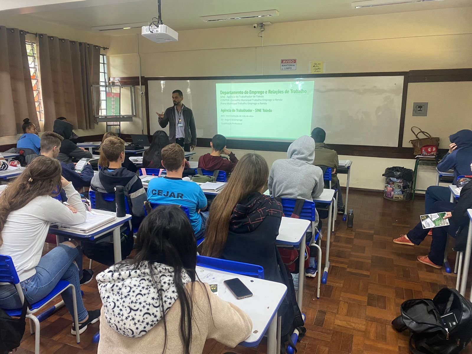 Cerca de 80 alunos de cinco turmas do Ensino Médio assistiram nos últimos dias a palestras sobre inserção no mercado de trabalho ministradas pela equipe da unidade local da Agência do Trabalhador. Na última sexta-feira (1º), a atividade, que integra o “Bora Lá Trabalhar”, programa multisetorial do governo municipal voltado para cidadãos com idade entre 12 e 29 anos, foi oferecida a estudantes do Colégio Estadual Esperança Favaretto Covatti (Jardim Bressan). Na segunda e quarta-feira desta semana (4 e 6) foi a vez de os alunos do Colégio Estadual João Arnaldo Ritt (distrito de Vila Nova) terem acesso a este conteúdo.