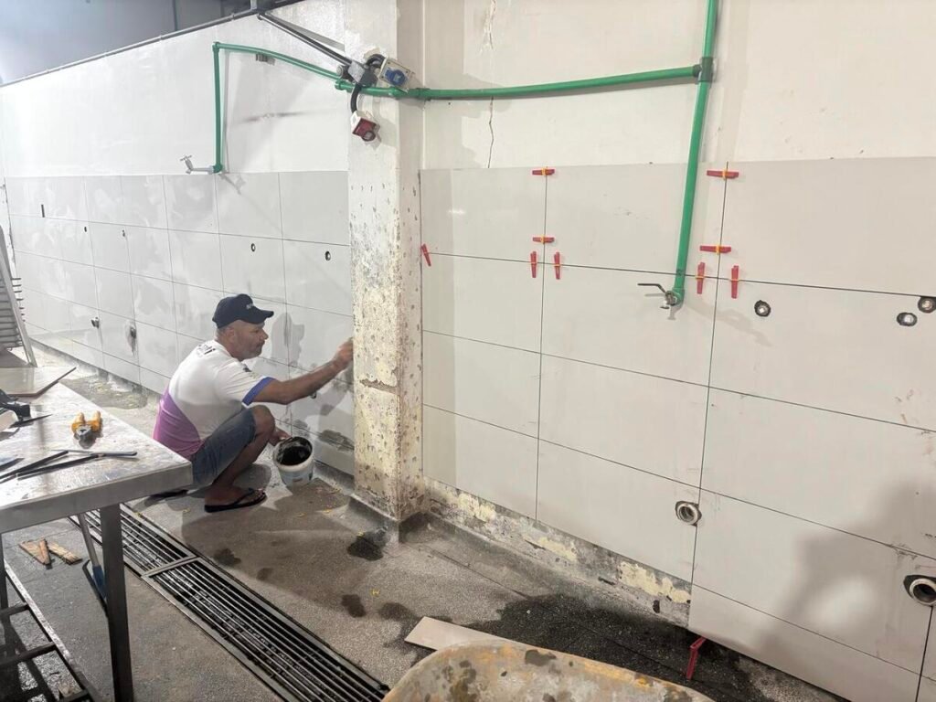 De acordo com o diretor da Unidade Central de Produção de Alimentos, Edson Pimenta, os trabalhos envolvem ajustes estruturais em pontos estratégicos do prédio. Ele explica que estão sendo realizados serviços de pintura e aplicação de revestimentos em áreas com maior incidência de umidade, especialmente em locais onde há uso constante de água ao longo do dia.
