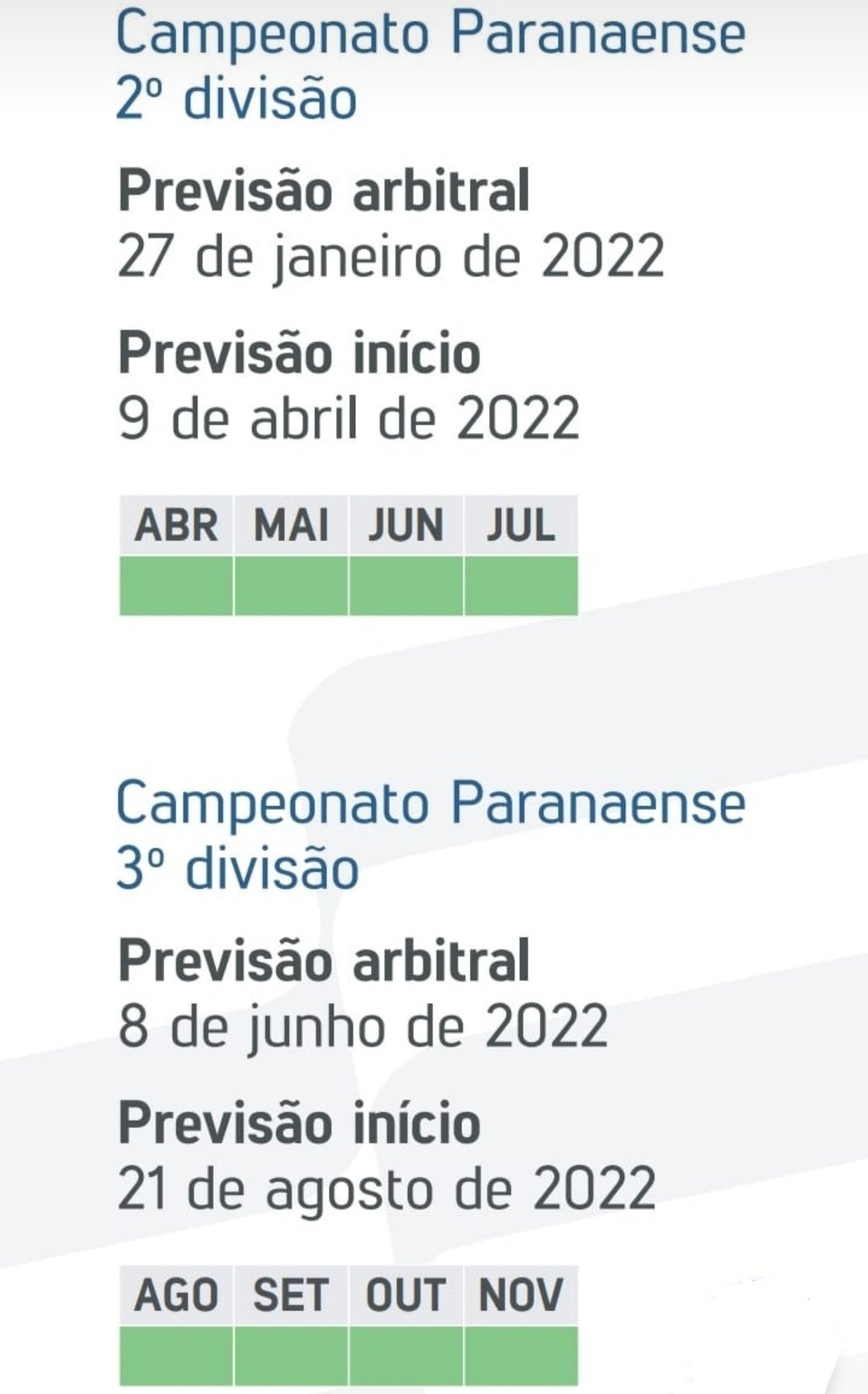 Confira a calendário: