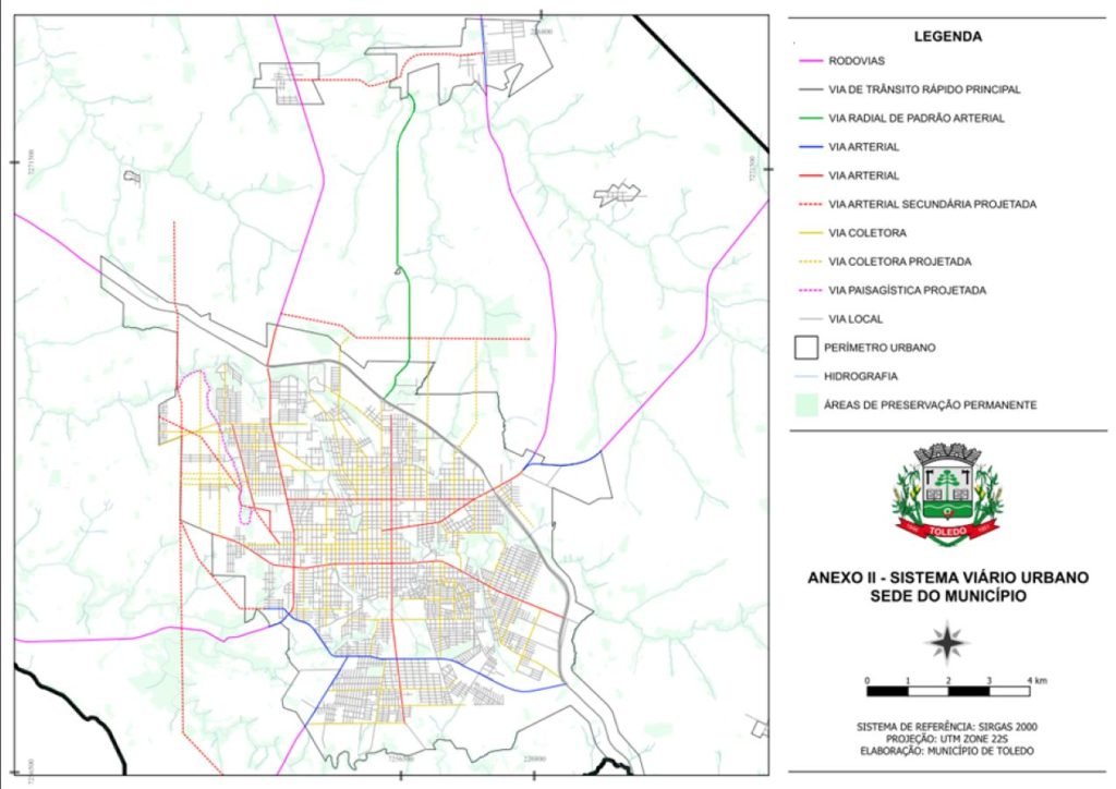 Tema de audiência pública do dia 10 de outubro, o Projeto de Lei n° 182/2025, de autoria do Poder Executivo, altera a Lei n° 2.367/2021 (Dispõe sobre o sistema viário do Município de Toledo). Na 27ª Sessão Suplementar, realizada na tarde de terça-feira (21), os vereadores aprovaram o texto por unanimidade em primeiro turno. As alterações incluem a Via Radial de Padrão Arterial na lista de vias rurais.