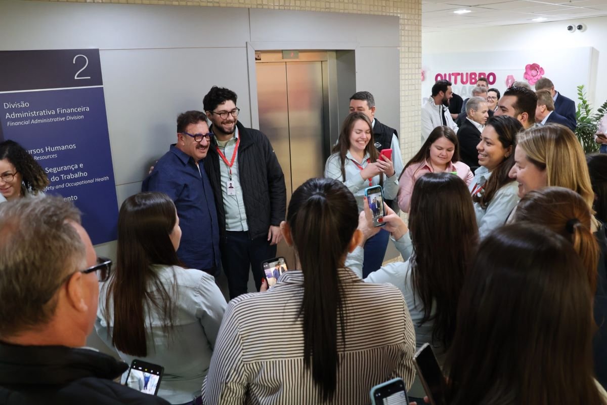 A visita de Ratinho movimentou o Centro Administrativo da Lar e ele fez questão de conhecer e interagir com as pessoas, cumprimentando, pousando para fotos e deixando uma mensagem de otimismo e reconhecimento pelo trabalho de todos.