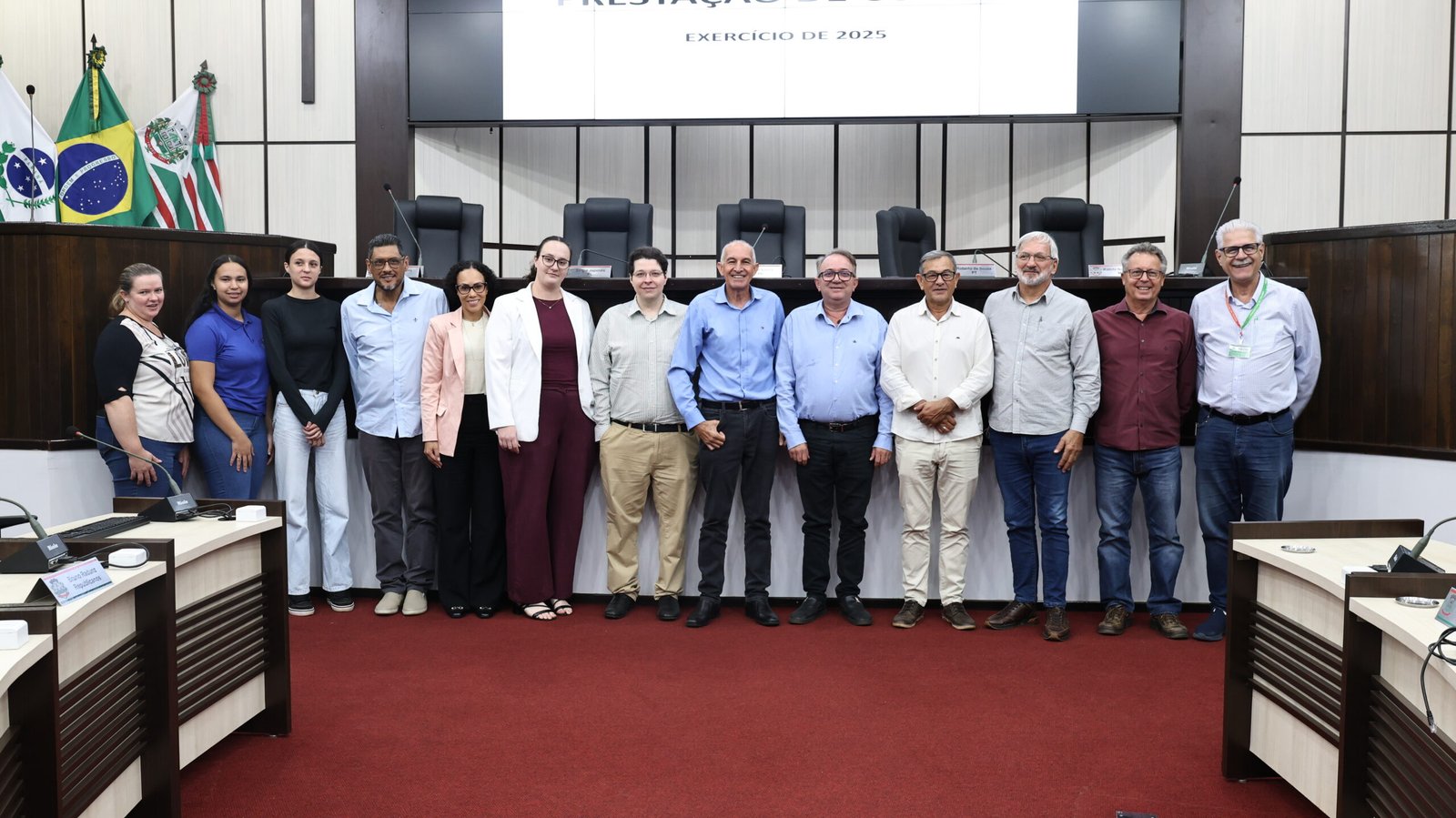 O diretor superintendente Cesar Kruger e sua equipe apresentaram os dados e obras realizadas durante o exercício de 2025. A CFO foi representada pelos vereadores Pedro Varela (PP), Roberto de Souza (PT) e Sérgio Japonês (PL).