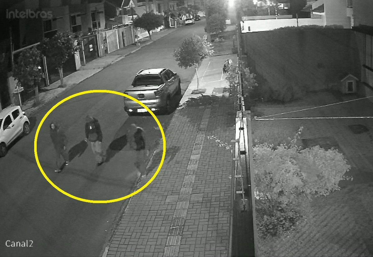 O vídeo a seguir, registrado por uma câmera de seguran em 10/9, mostra os três indivíduos flagrados em atitude suspeita. Confira: