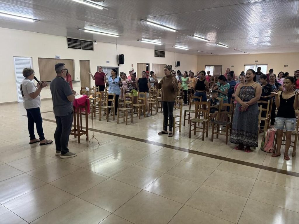 A equipe da Estratégia de Saúde da Família (ESF) do Jardim Panorama ministrou uma palestra sobre saúde da mulher durante o encontro mensal da Pastoral do Auxílio Fraterno na Paróquia Sagrada Família. A ação, voltada ao Outubro Rosa, foi realizada na última sexta-feira (10) e abordou autocuidado, higiene pessoal, exames da mulher, prevenção a doenças, entre outros.