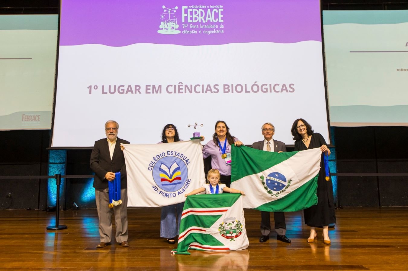 PRIMEIRO LUGAR – A estudante Beatriz Maria Ferreira dos Santos teve desempenho de grande relevância, conquistando o 1º lugar na Categoria Ciências Biológicas. Além disso, recebeu credencial para participar da Regeneron ISEF, considerada a maior feira de ciências do mundo, e foi contemplada com o Prêmio Destaque Unidades da Federação, como melhor projeto do Paraná, além do Prêmio Destaque da Sociedade Brasileira para o Progresso da Ciência (SBPC).