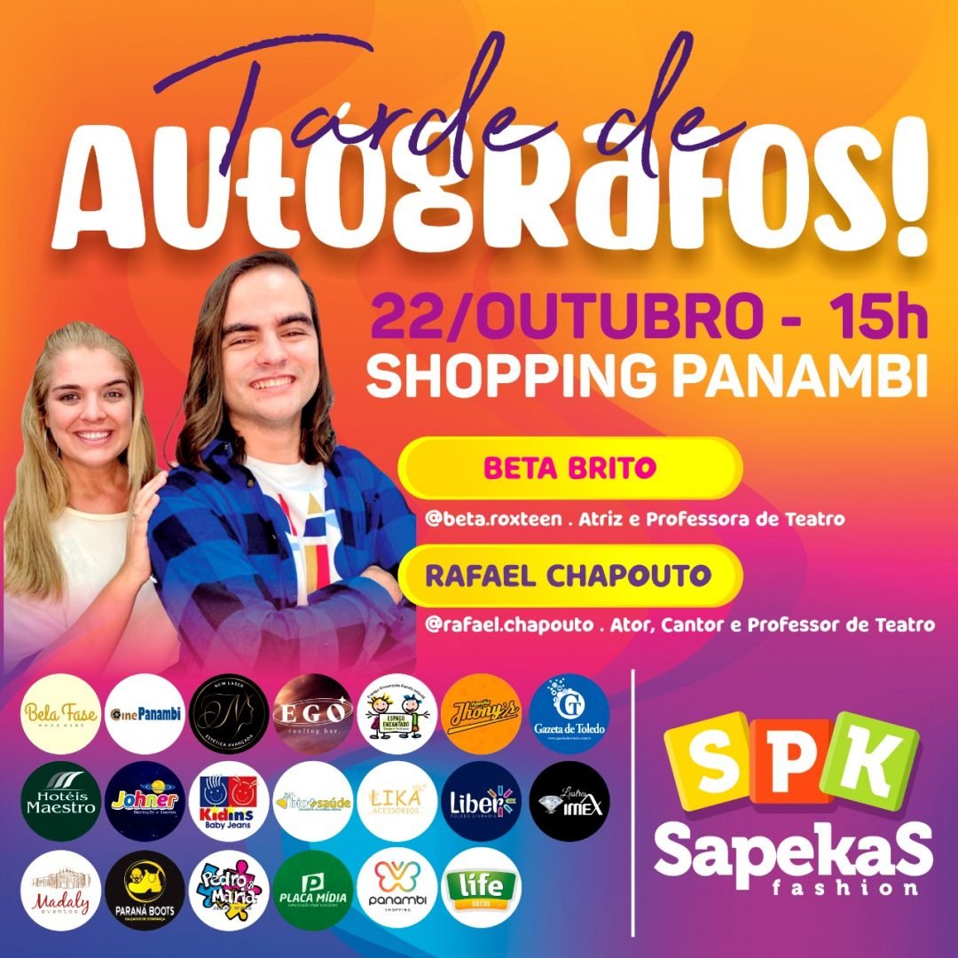 No sábado terá a tarde de autógrafos no Shopping Panambi a partir das 15hs. Rafael Chapouto e Beta Brito atenderão o público infantil que poderão tirar fotos e conhecer os artistas. A tarde de autógrafos é aberto a todos.