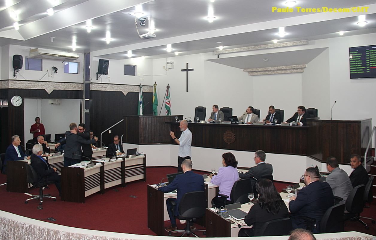 Antes o deputado federal percorreu o plenário e cumprimentou cada vereador, inclusive seu ex-suplente, Roberto Souza, que assumiu o mandato de vereador em definitivo no dia 14 de março com sua renúncia. Na sequência, o ex-vereador cumprimentou ainda a Mesa Diretora da Câmara, através do vice-presidente, Geraldo Weisheimer, presidente Dudu Barbosa, secretário Valdomiro Bozó e segundo-secretário, Genivaldo Jesus.