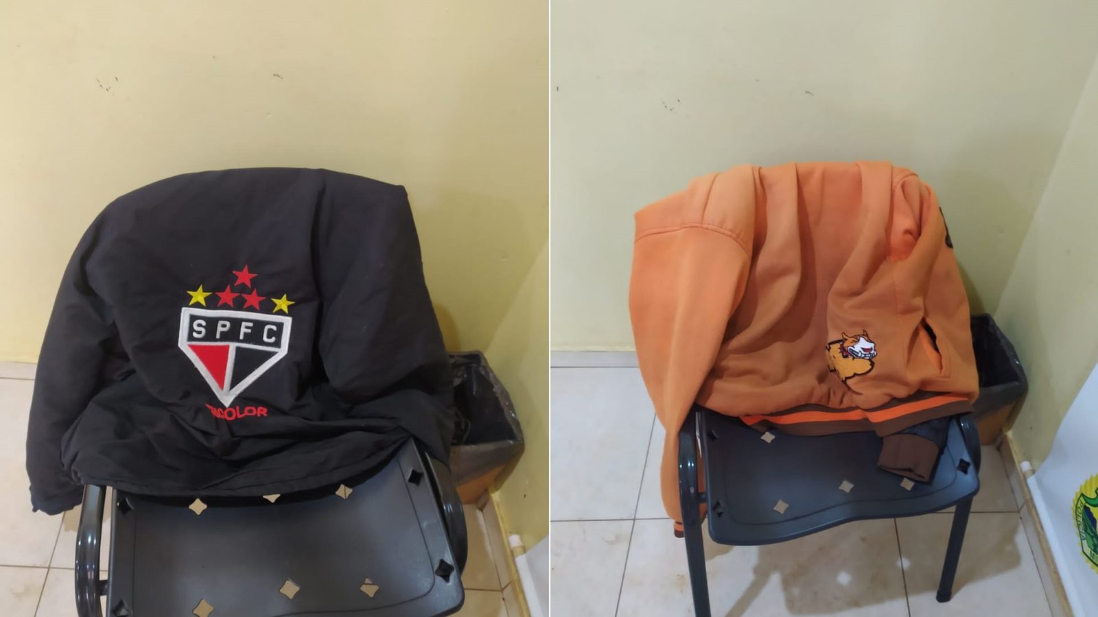 Roupas usadas pelos bandidos e flagradas pelas câmeras foram encontradas na residência. Fotos: 6º BPM