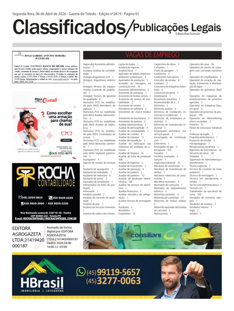 Autora: Tânia Bilato – supervisão jornalista da Gazeta de Toledo, Eliseu Langner de Lima