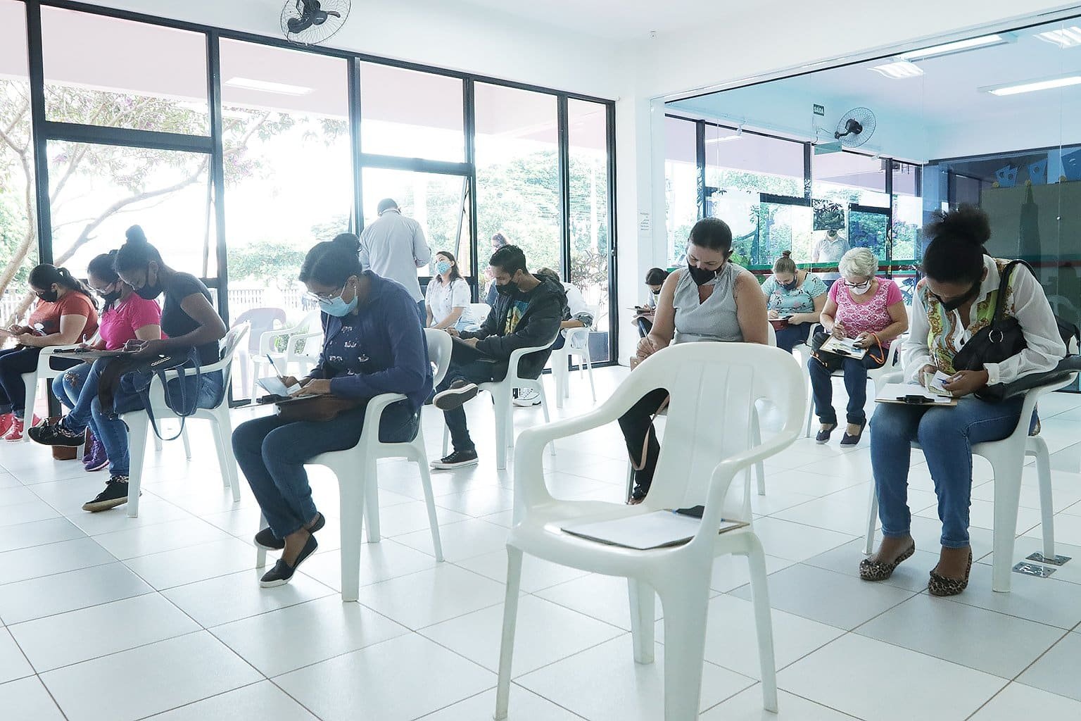 Todo o ambiente foi preparado de acordo com as normas sanitárias de prevenção à Covid-19, com entrada permitida somente para pessoas com máscara, disponibilização de álcool em gel em vários pontos, aferição da temperatura de todos que ingressam no recinto e distanciamento entre mesas, cadeiras, candidatos e entrevistadores. Para evitar aglomerações, estão sendo distribuídas 600 senhas por dia, quase o dobro do público esperado pela empresa empregadora – os primeiros a chegarem, puderam realizar todos os procedimentos ainda hoje.