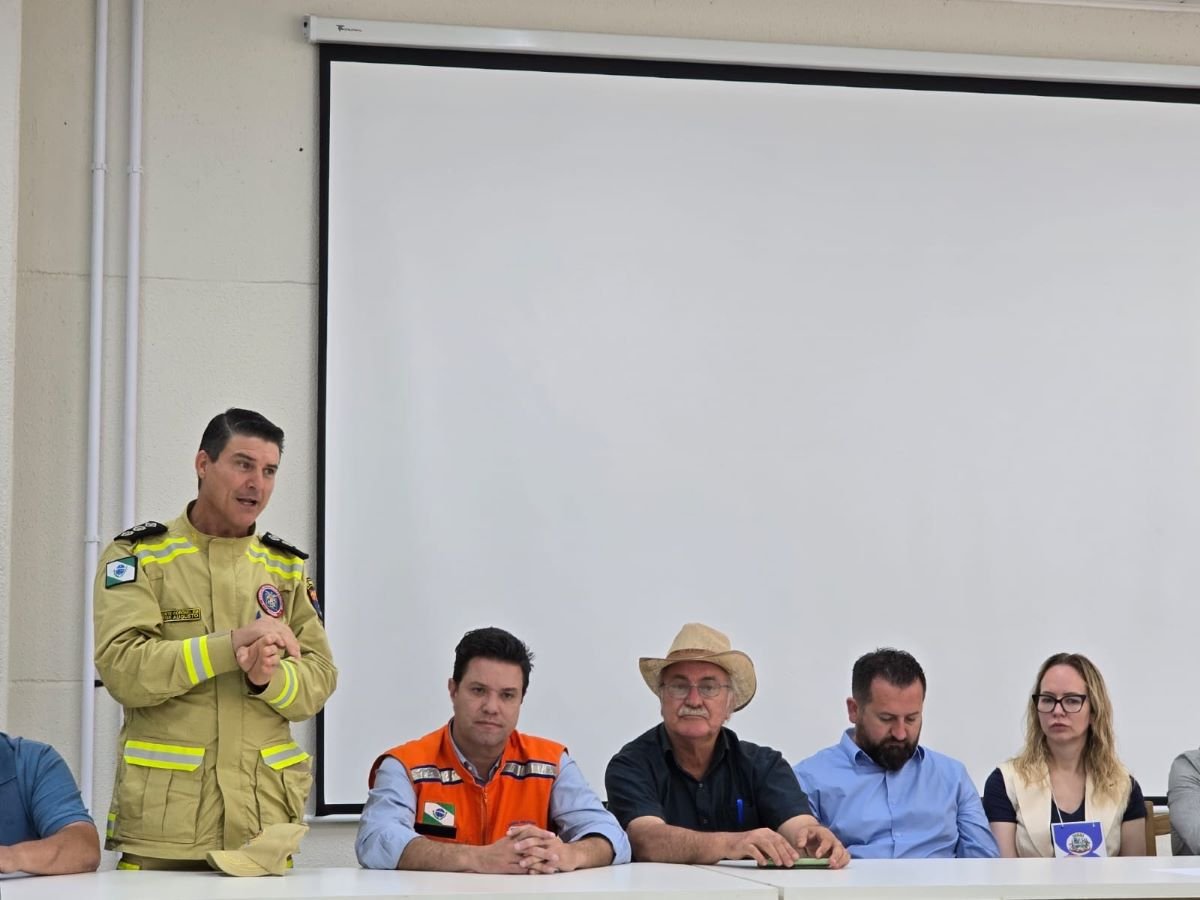 Secretário das Cidades, Guto Silva, em reunião com representantes de órgãos estaduais e voluntários nesta terça-feira (11) em Rio Bonito do Iguaçu. Foto/Vídeo: Divulgação Secid/Pr