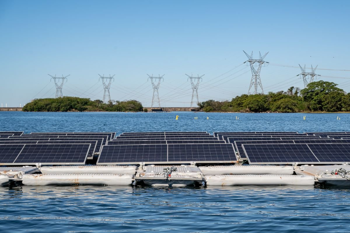 Primeiro conjunto de painéis fotovoltaicos foi colocado na água nesta semana; expectativa é que a usina comece a gerar energia ainda este ano