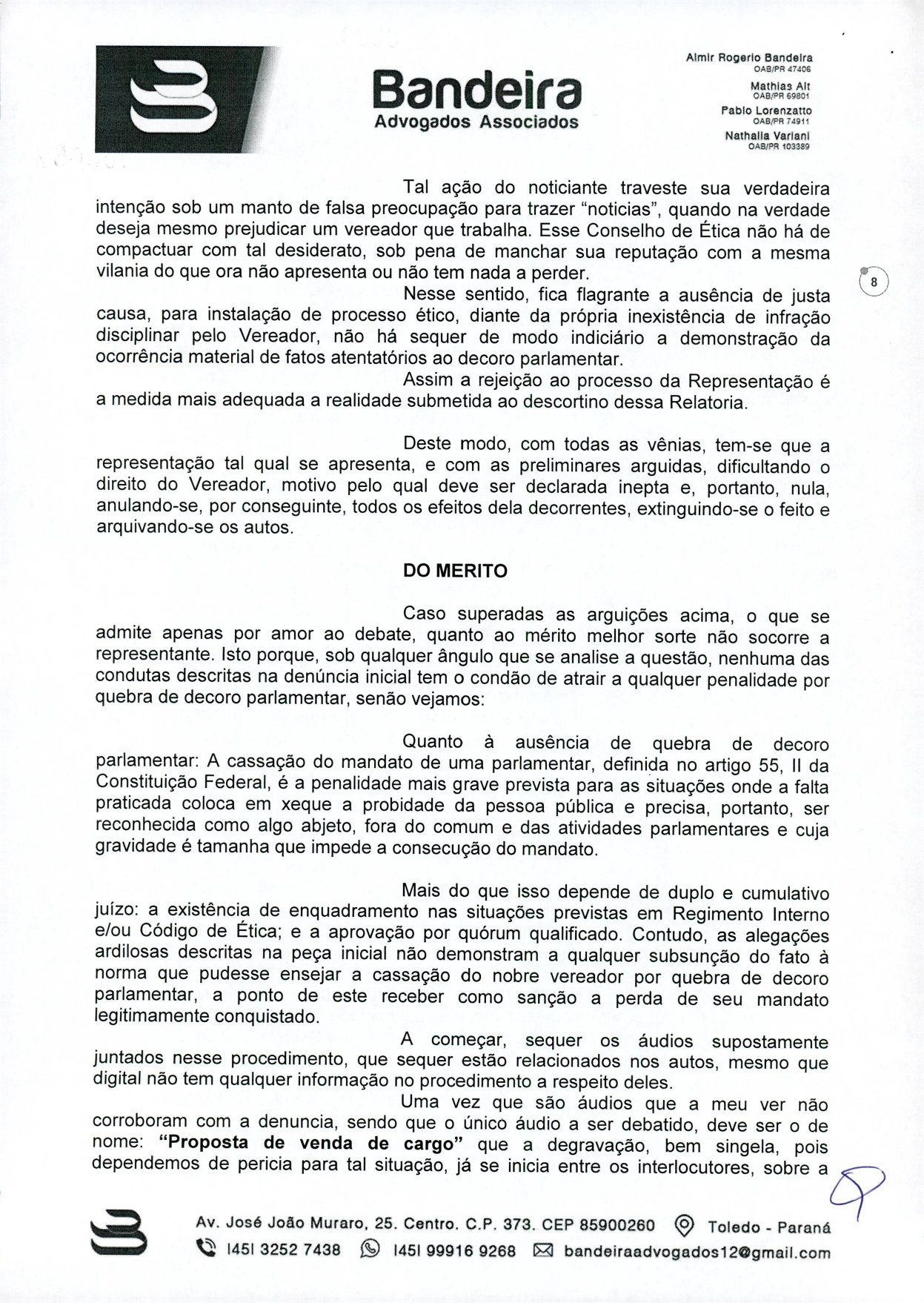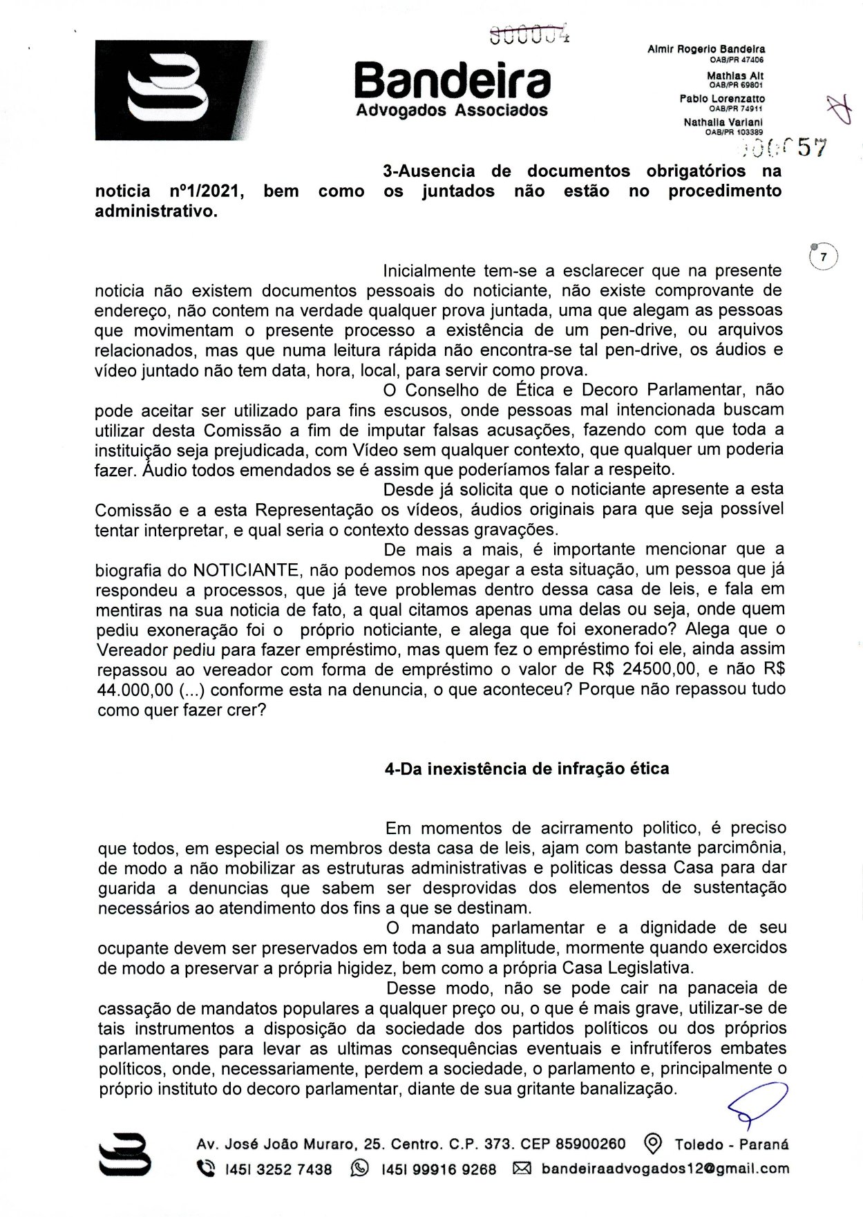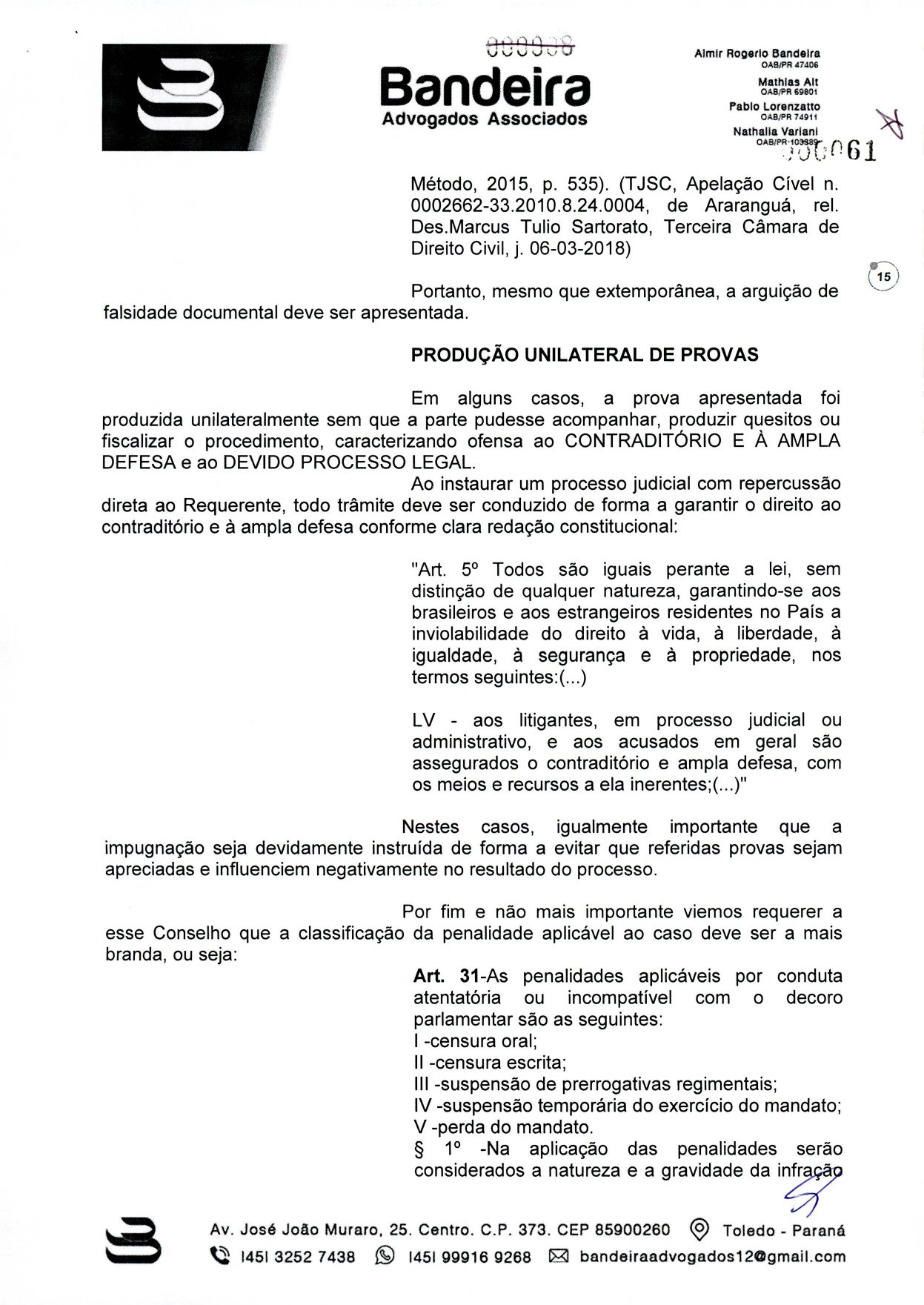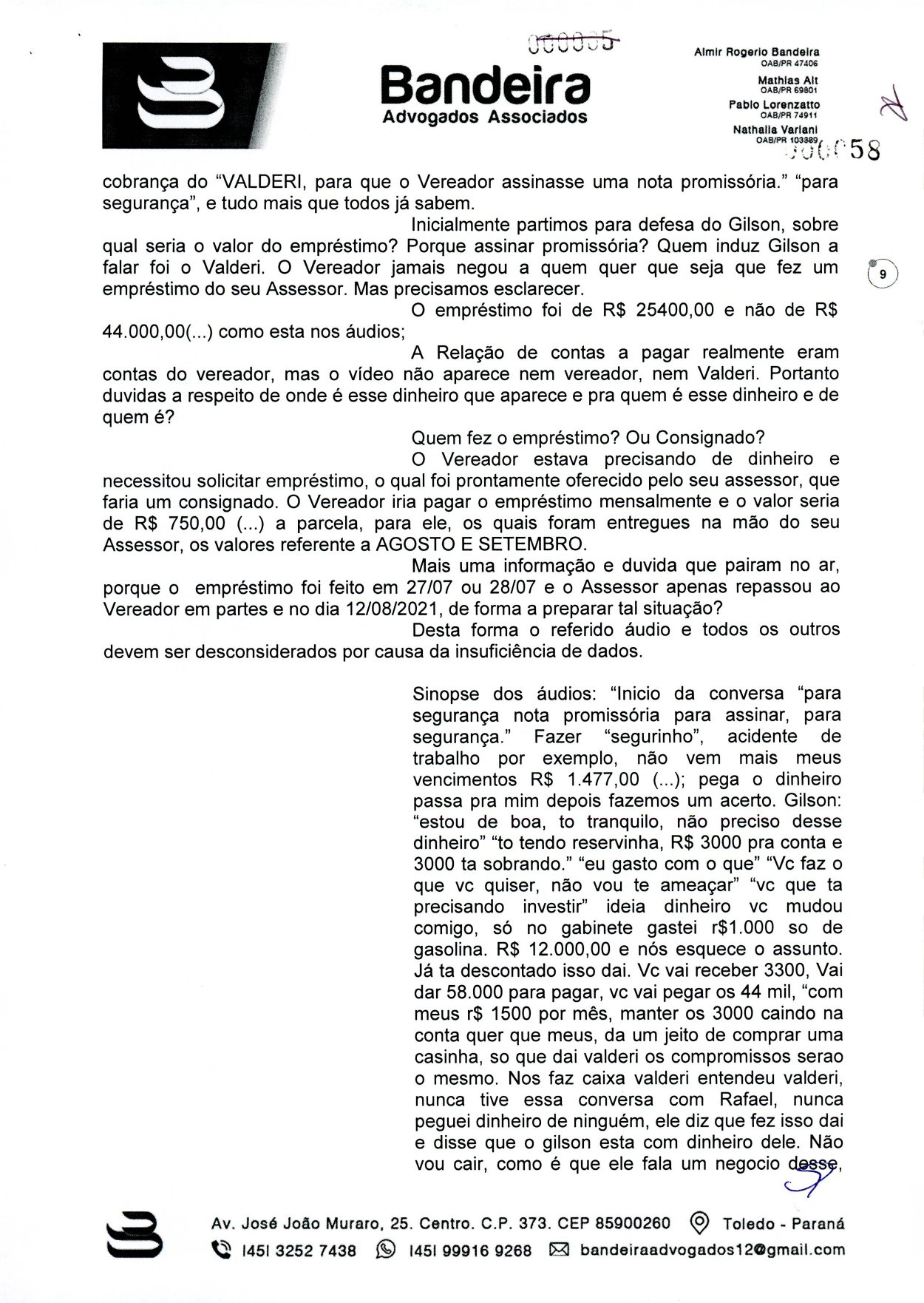 Da mesma forma que publiquei nesse espaço as acusações feitas pelo ex-assessor Valderi Muller em desfavor do vereador Gilson Francisco, hoje tive acesso à defesa por ele protocolada na data de ontem, mais precisamente às 16h44m, e irei reproduzi-la em sua íntegra. Cabe a vocês, nobre leitores da Gazeta, fazerem suas análises, e ao Conselho de Ética e de Decoro Parlamentar ser o mais correto possível nessa decisão.