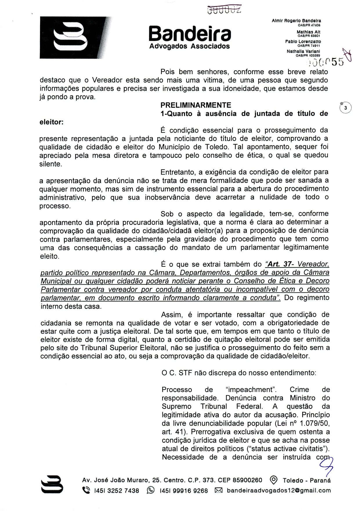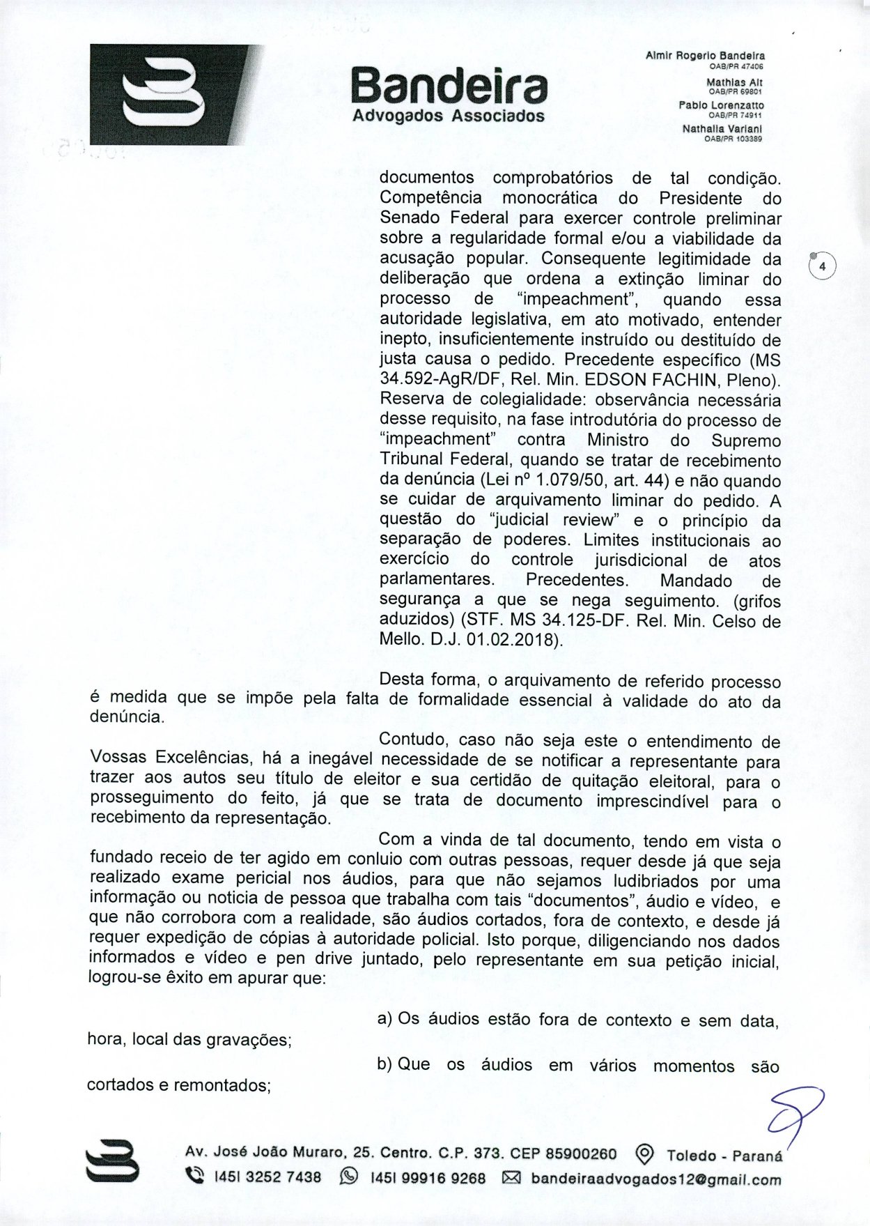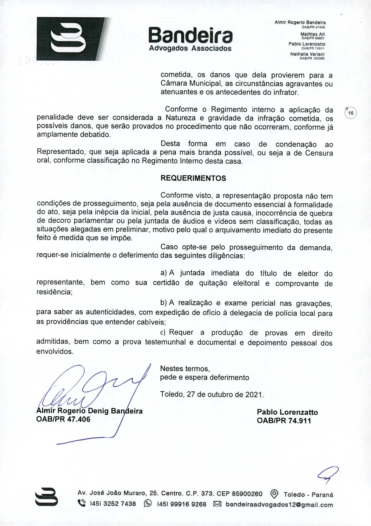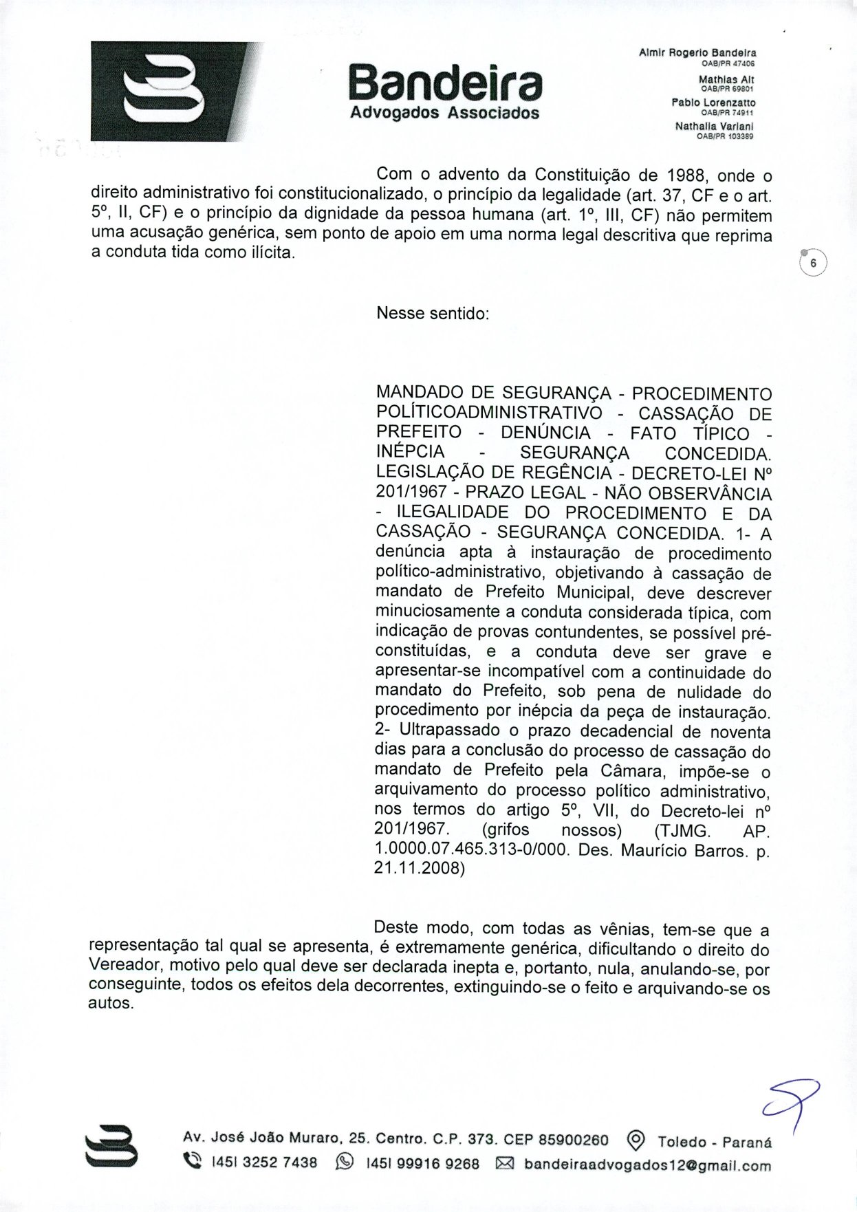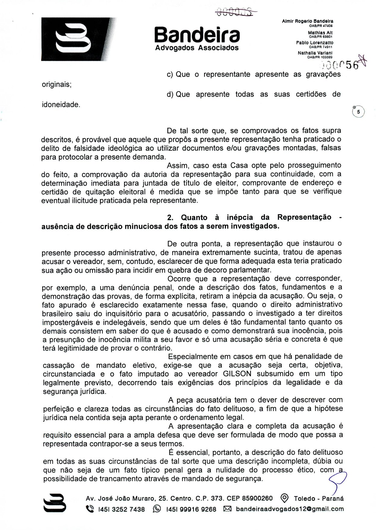 Da mesma forma que publiquei nesse espaço as acusações feitas pelo ex-assessor Valderi Muller em desfavor do vereador Gilson Francisco, hoje tive acesso à defesa por ele protocolada na data de ontem, mais precisamente às 16h44m, e irei reproduzi-la em sua íntegra. Cabe a vocês, nobre leitores da Gazeta, fazerem suas análises, e ao Conselho de Ética e de Decoro Parlamentar ser o mais correto possível nessa decisão.