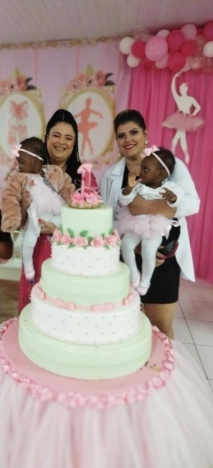 A festa reuniu cerca de 150 pessoas entre amigos, familiares, voluntários, servidores públicos e uma ampla equipe da saúde que acompanharam o primeiro ano das gêmeas. Tudo na festa foi doado, desde o bolo confeitado especialmente para elas até as lembrancinhas que foram entregues. As duas bailarinas com lindos laços nos cabelos e que ainda engatinham e ensaiam os primeiros passinhos ganharam muito carinho e não faltou colo e afago.