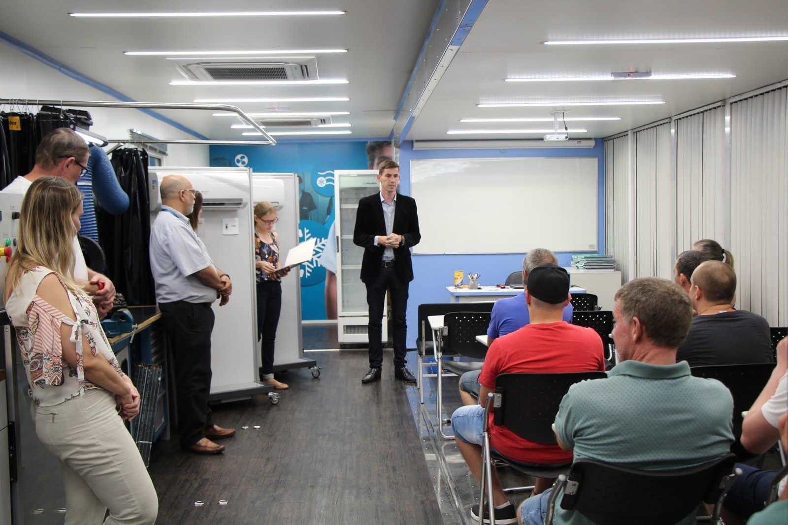 Teve início nesta quarta-feira (8) os cursos profissionalizantes na Escola Móvel do Senai (Serviço Nacional de Aprendizagem Industrial). Os cursos são de Operação de Sistemas de Refrigeração Industrial, com carga horária de 24h (noturno) e 40h (diurno) e de Montagem e Manutenção de Câmaras Frigoríficas de 80h (noturno), que terá início no dia 21 de maio. A unidade móvel está instalada na Praça das Orquídeas, onde permanecerá até 19 de junho.