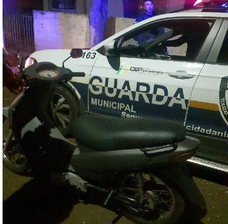 A Guarda Municipal de Toledo apreendeu, uma motoneta Honda Biz de cor preta em situação irregular, após o condutor abandonar o veículo e fugir ao perceber a aproximação da viatura.