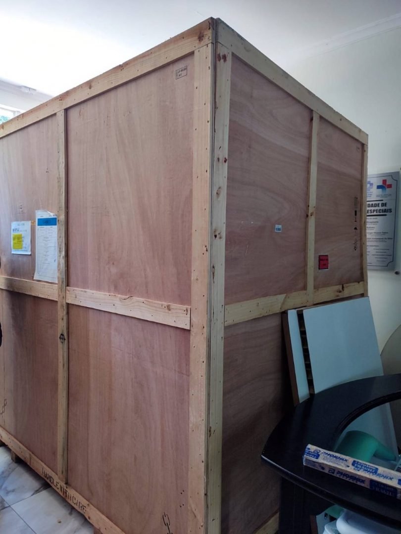 Técnicos constataram que um aparelho para fazer exames de mamografia e outro, de alta complexidade, estão encaixotados.