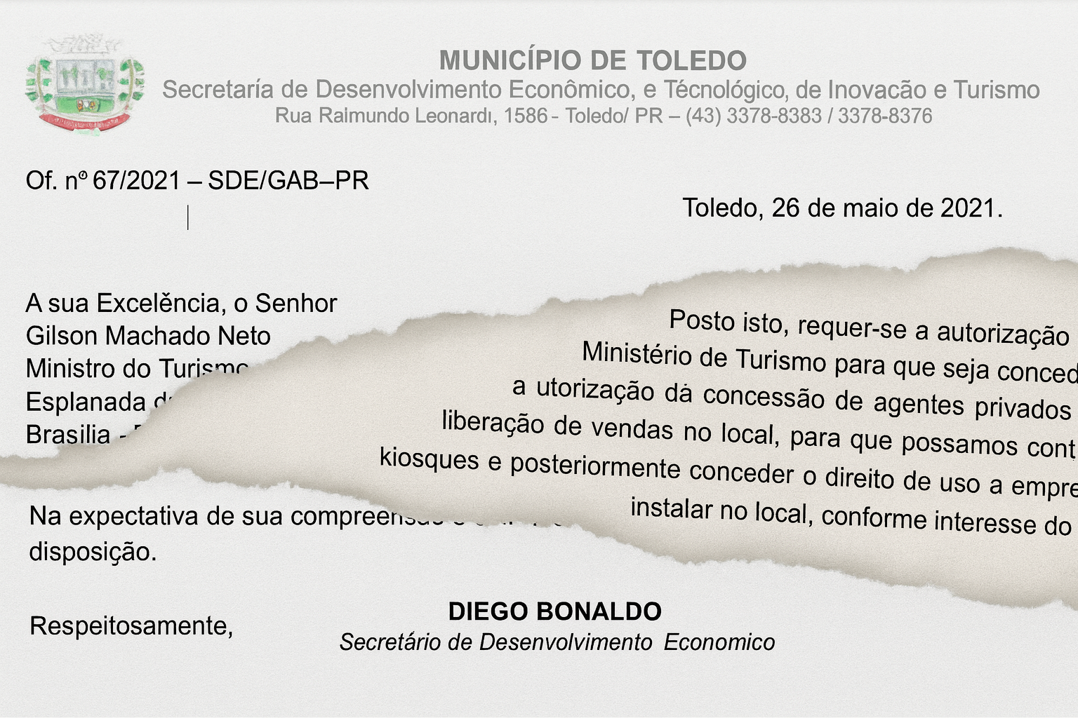 A carta oficial enviada ao Ministério do Turismo detalha tudo: histórico do parque, estrutura, fluxo de público e, principalmente, a solicitação formal para concessão e exploração privada, numa época em que alguns dos atuais defensores da antiga gestão juram que aquilo jamais existiu.