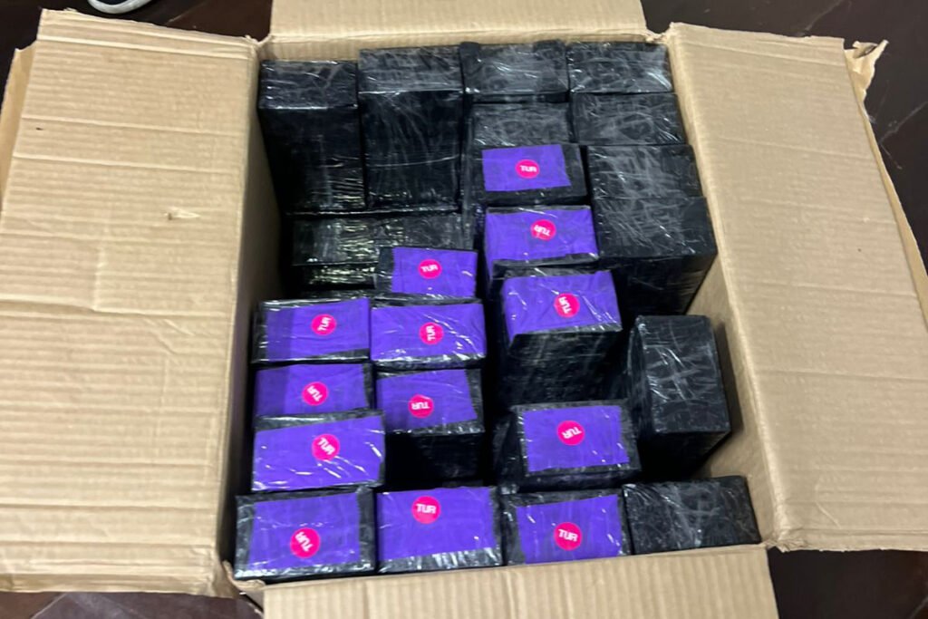 Um policial que passava pela região avistou duas vans estacionadas enquanto os indivíduos transferiam caixas de um veículo para o outro. Diante da suspeita de irregularidade, o policial realizou a abordagem e constatou que as 20 caixas de papelão estavam lacradas e etiquetadas como se contivessem guardanapos de papel.