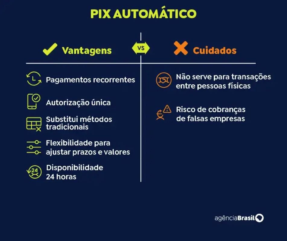 Com a promessa de substituir o débito automático e os boletos, o Pix automático torna-se obrigatório nesta segunda-feira (13). Lançada em caráter opcional em junho, a extensão do Pix foi desenvolvida para o usuário autorizar pagamentos periódicos a empresas e prestadores de serviços, como microempreendedores individuais (MEI). O cliente autoriza uma única vez, com os débitos ocorrendo automaticamente na conta do pagador.